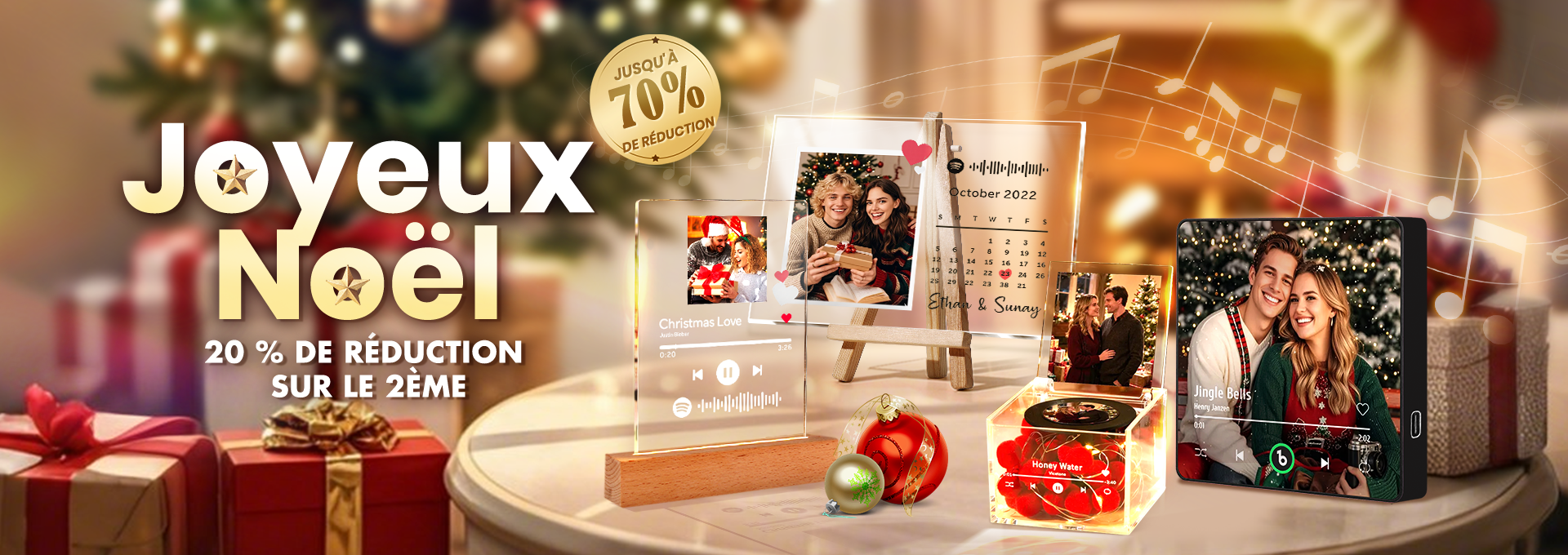 Calendrier Magnétique Musical Personnalisé - Cadeau d'Anniversaire Romantique avec Photos - Lecteur de Chansons Intégré -