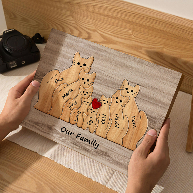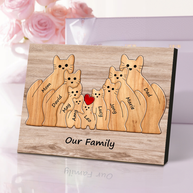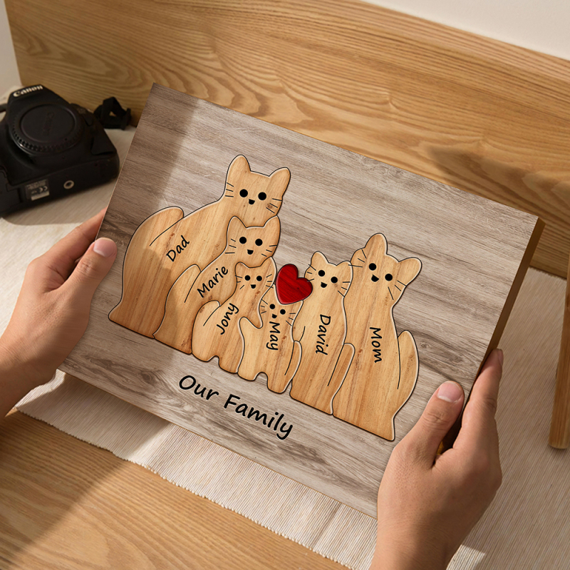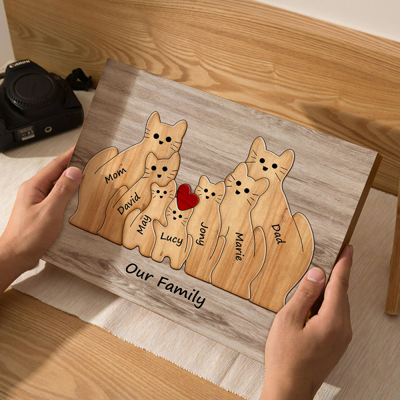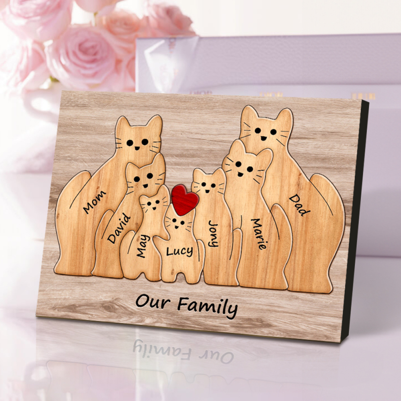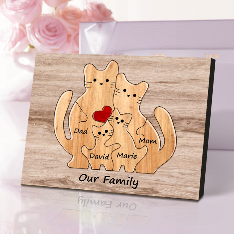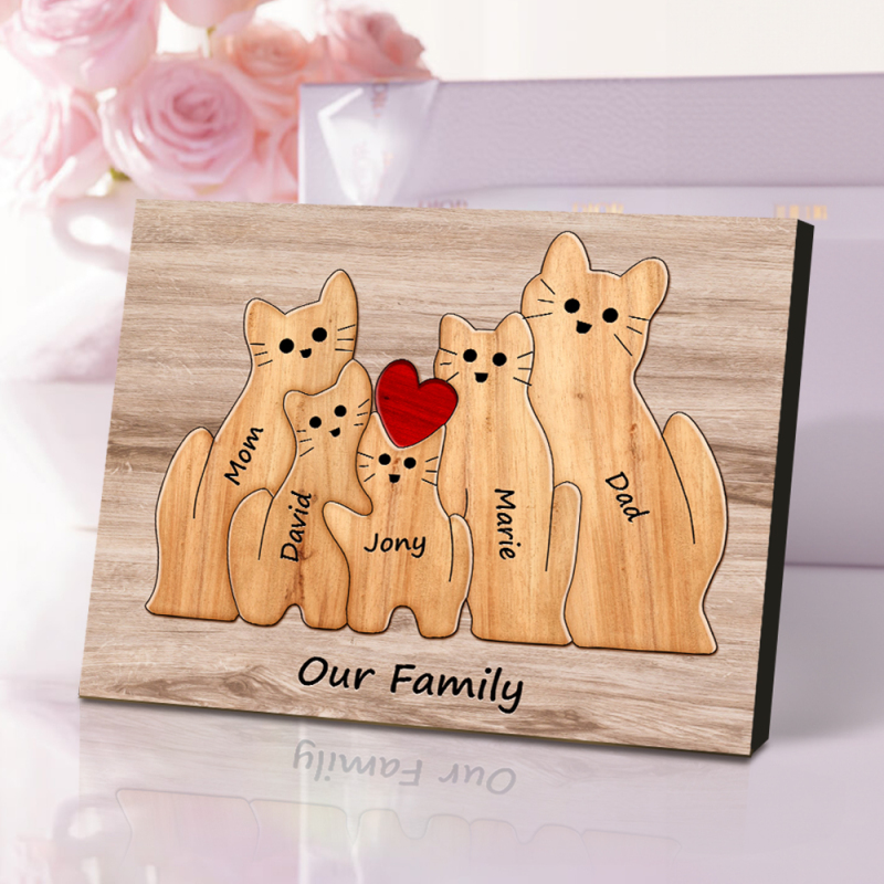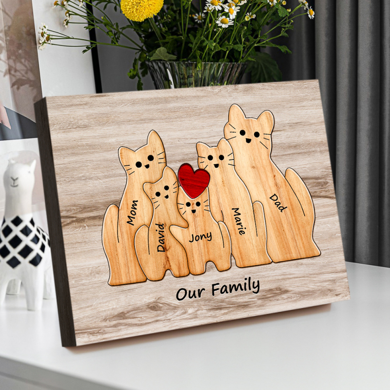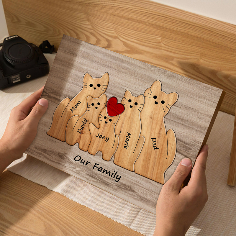 Puzzle Animal Personnalisé Famille Chat Cadeau D'impression Personnalisé Pour Maman, Grand-mère
