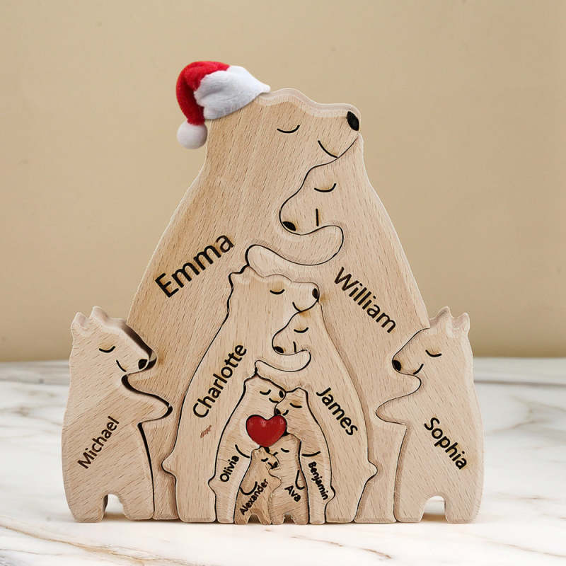 Ours En Bois Avec Noms Personnalisés, Puzzle Familial, Décoration De Maison, Cadeaux De Noël