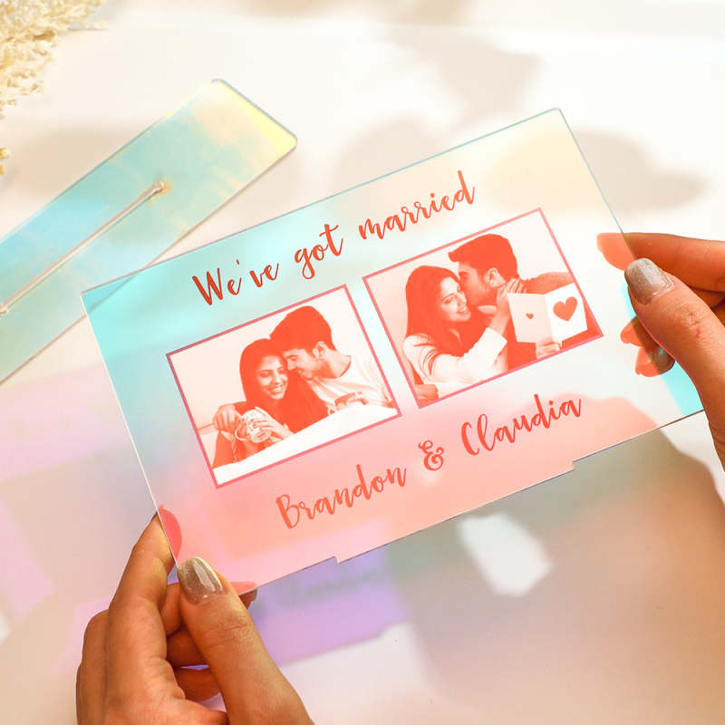 Photo Personnalisée Transparente Dégradé De Couleur, Ornements En Acrylique, Souvenir Gravé Personnalisé Pour Les Couples