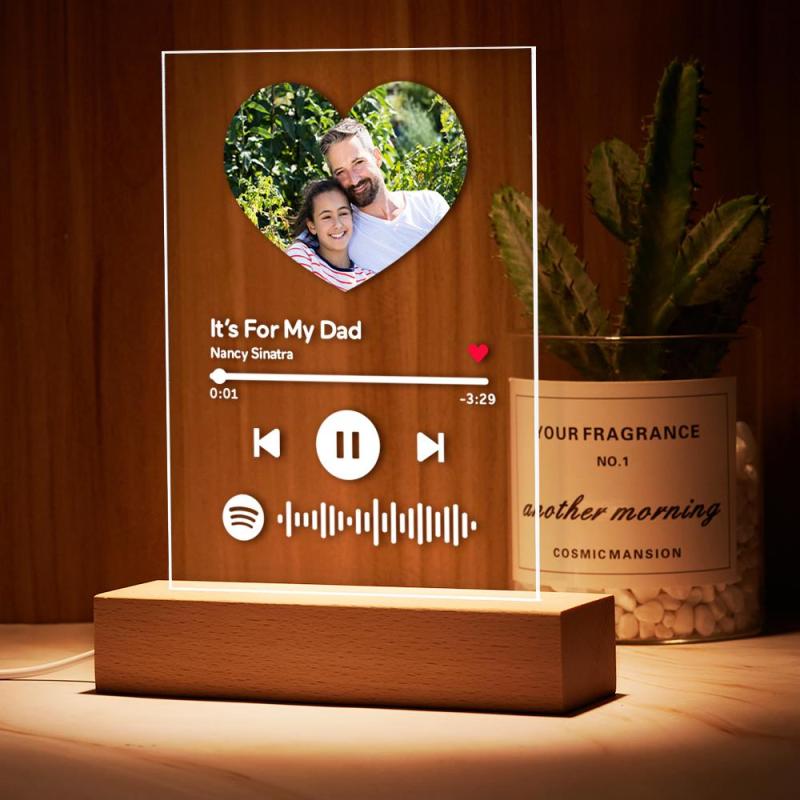 Porte-clés Photo En Verre Spotify Personnalisé Plaque De Code Spotify Personnalisée Et Veilleuse - En Forme De Cœur Pour Papa
