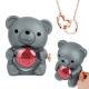 Collier Cœur Gravé Avec Véritable Rose, Coffret Cadeau Ours En Rose, Coffret Cadeau Pour Bijoux