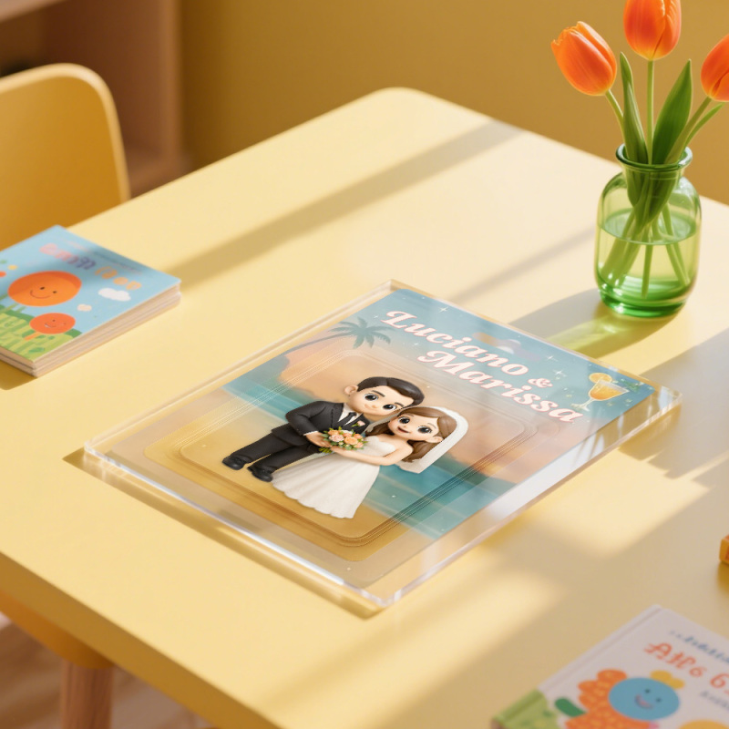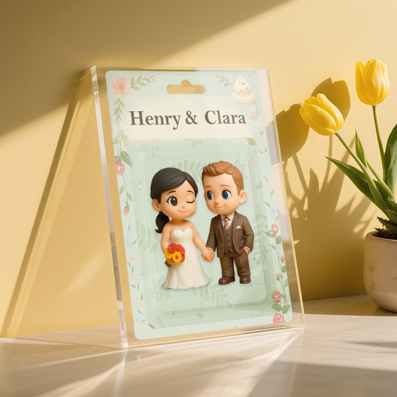 Plaque Photo Personnalisée En 3d, Style Art Jouet, Cadeau Amusant Pour Couple Pour Anniversaire De Mariage