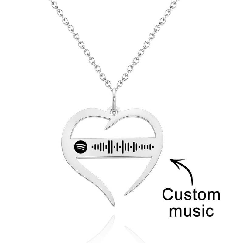 Scannable Spotify Code Collier Creux en Forme de Coeur Collier Cadeaux pour Petite Amie