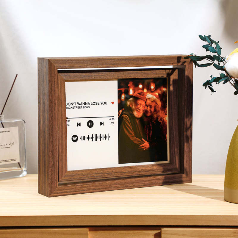 Cadre Rotatif Pour Photo Avec Code Spotify Scannable, Cadre Décoratif Flottant Personnalisé, Cadeaux Pour Couples