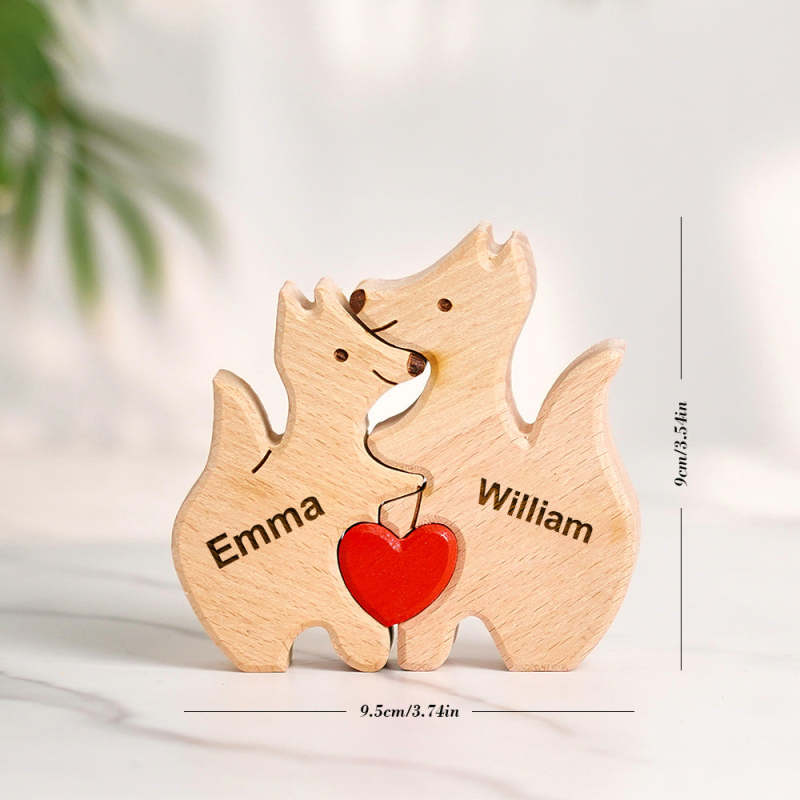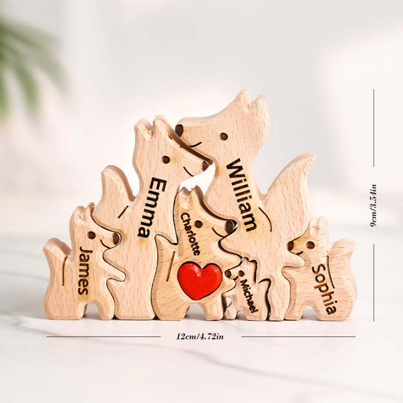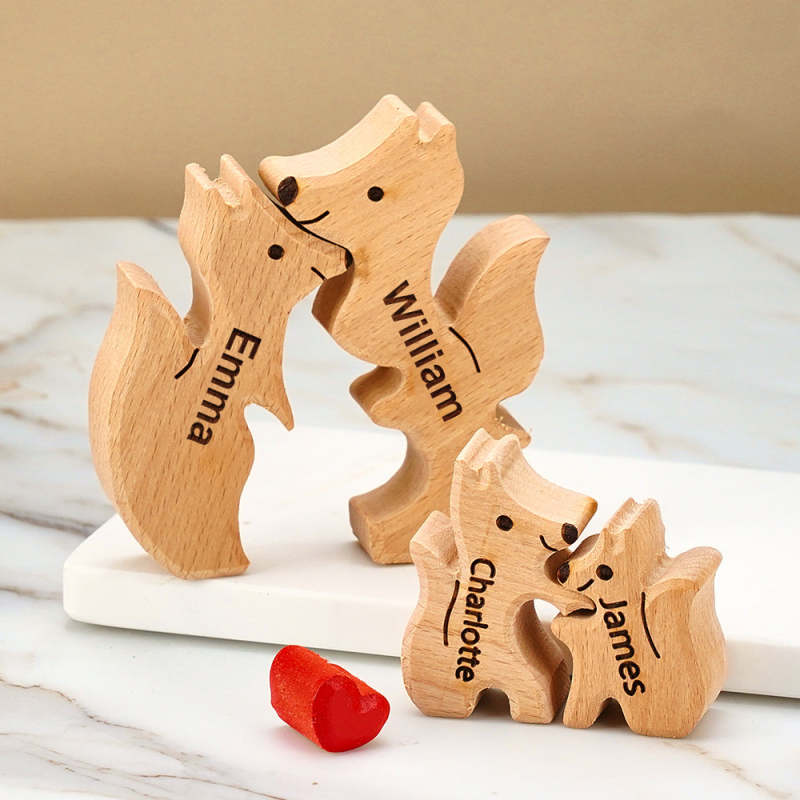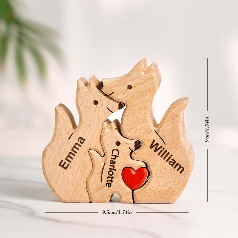 Puzzle Familial De Renard En Bois, Noms Personnalisés, Cadeaux De Pendaison De Crémaillère